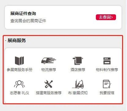 进入展商中心,可以看到展会相关服务手册、布/撤展流程、物流推荐、物料制作推荐等展商服务,帮助展商轻松参展。