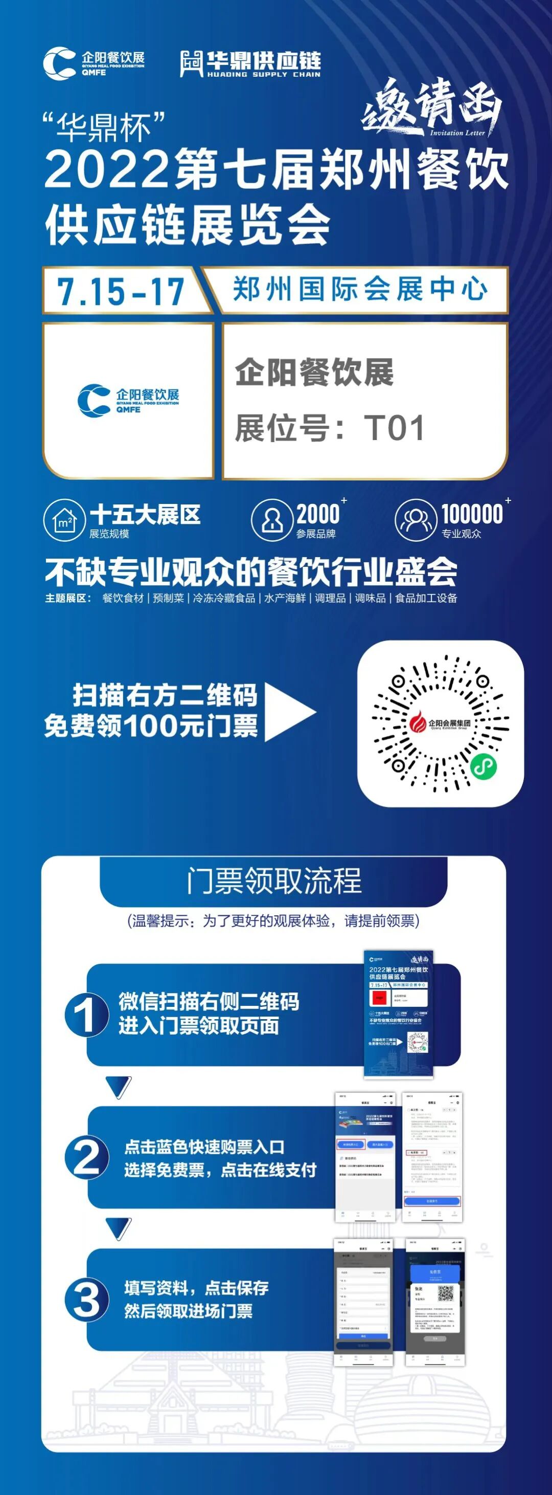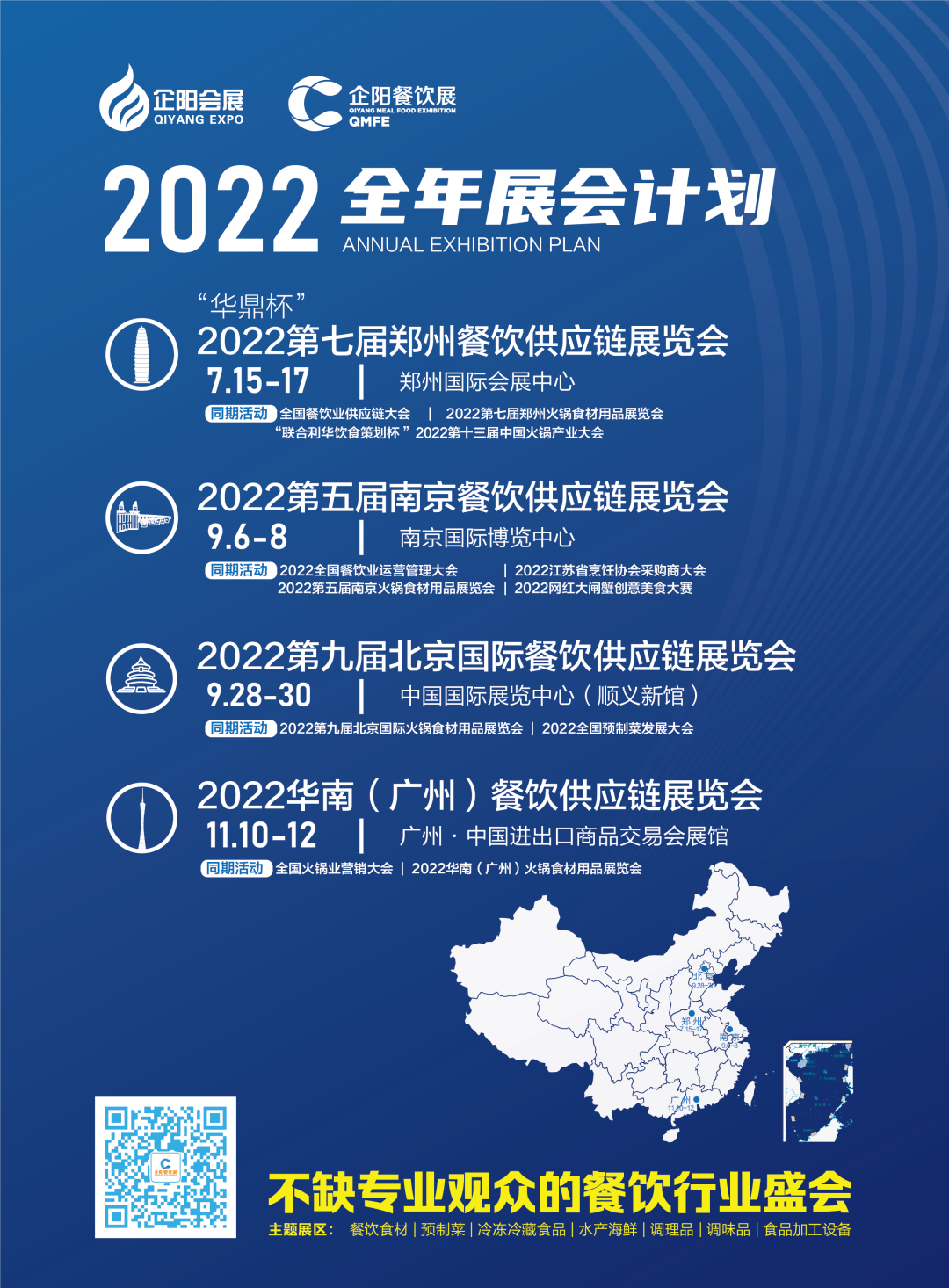 2022年7月15-17日,由北京博闻企阳国际展览有限公司主办的“2022第七届郑州餐饮供应链展览会”(简称郑州餐饮展)将在郑州国际会展中心隆重举行。
