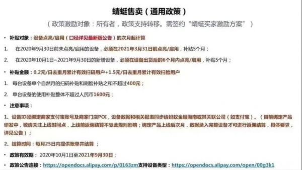 支付宝刷脸支付设备官方奖励政策截图