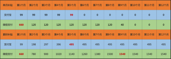 支付宝、微信支付每月累积奖励金额对比
