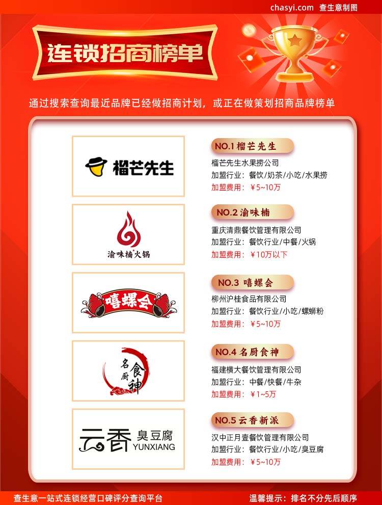 连锁招商榜单揭晓:渝味楠、嘻螺会等五大品牌受瞩目