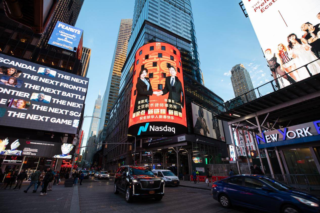 2024年2月8日,北京析术律师事务所受邀登陆在美国纽约时报广场纳斯达克大屏,站在世界的十字路口,以全球媒介传递中国声音。