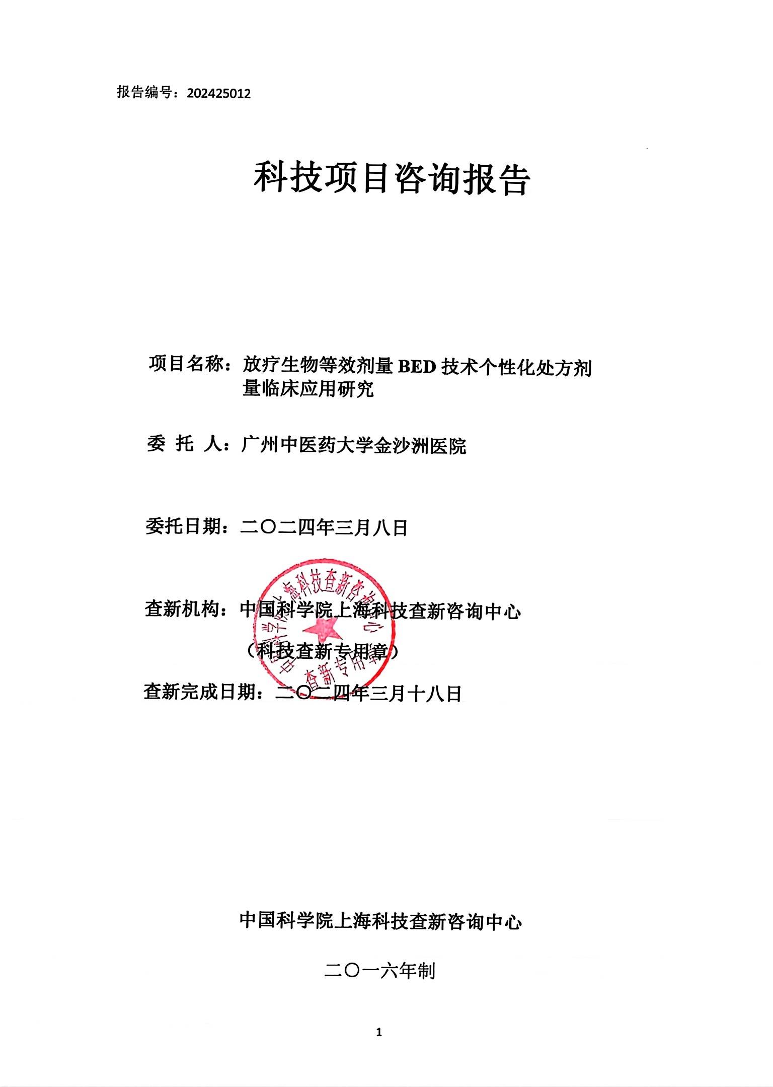 金沙洲医院“新质BED放疗技术”被鉴定为“国内领先水平”