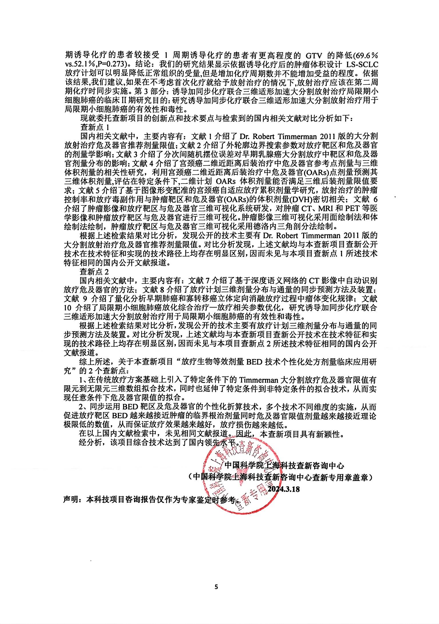 如何实现更佳的放疗增益比,一直是金沙洲医院领导班子以及放疗专家的核心目标。自2019年以来,面向精准放疗方向发力。经历4年的发展,引入了Tomo系统、Ethos 直线加速器、TrueBeam系统、M6全数字放射外科射波刀等众多前沿的放疗设备用于临床。于此同时金沙洲医院还开展了多种多样的学术交流活动、国内外科研协作,支持多种放疗相关项目的研究和应用。目前有医院放疗专家赵志强副主任医师团队协同医院内外多位专家开展的“放疗生物等效剂量BED技术个性化处方剂量临床应用研究”业已数千人次的临床实践,具有良好的社会经济效益。经中国科学院上海科技查新咨询中心研究分析认为本项目在“国内外文献检索中,未见相同文献报道,本查新项目具有新颖性”;同时认为“该项目综合技术水平达到了国内领先水平”。