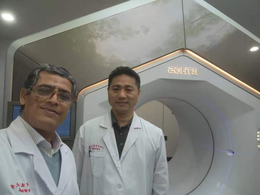 图3 赵志强主任与国际交流学者在放疗机房交流