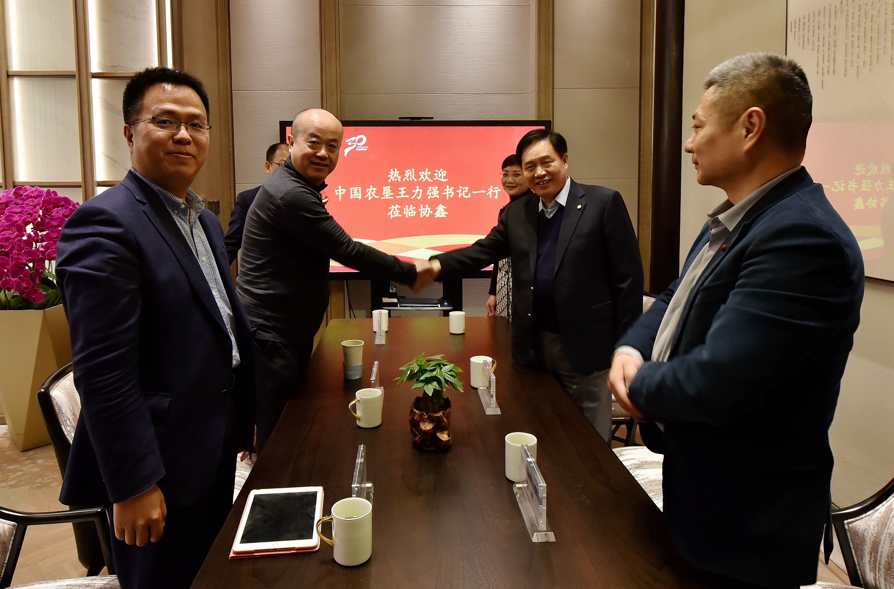 洽谈会结束后,中垦基金副书记王力强、前沿子基金总经理王先标陪同协鑫集团董事长朱共山出席同广州市政府基金战略合作会议。