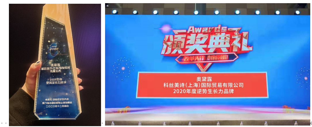 斯贝瑞,年度,CBERI,斯贝瑞,斯贝瑞奖,品牌经济网,品牌经济学,中国品牌经济研究院,品牌研究院,希鸥网,希欧,第八届中国创新创业领袖峰会 奥黛露获“2020年度逆势增长品牌奖”