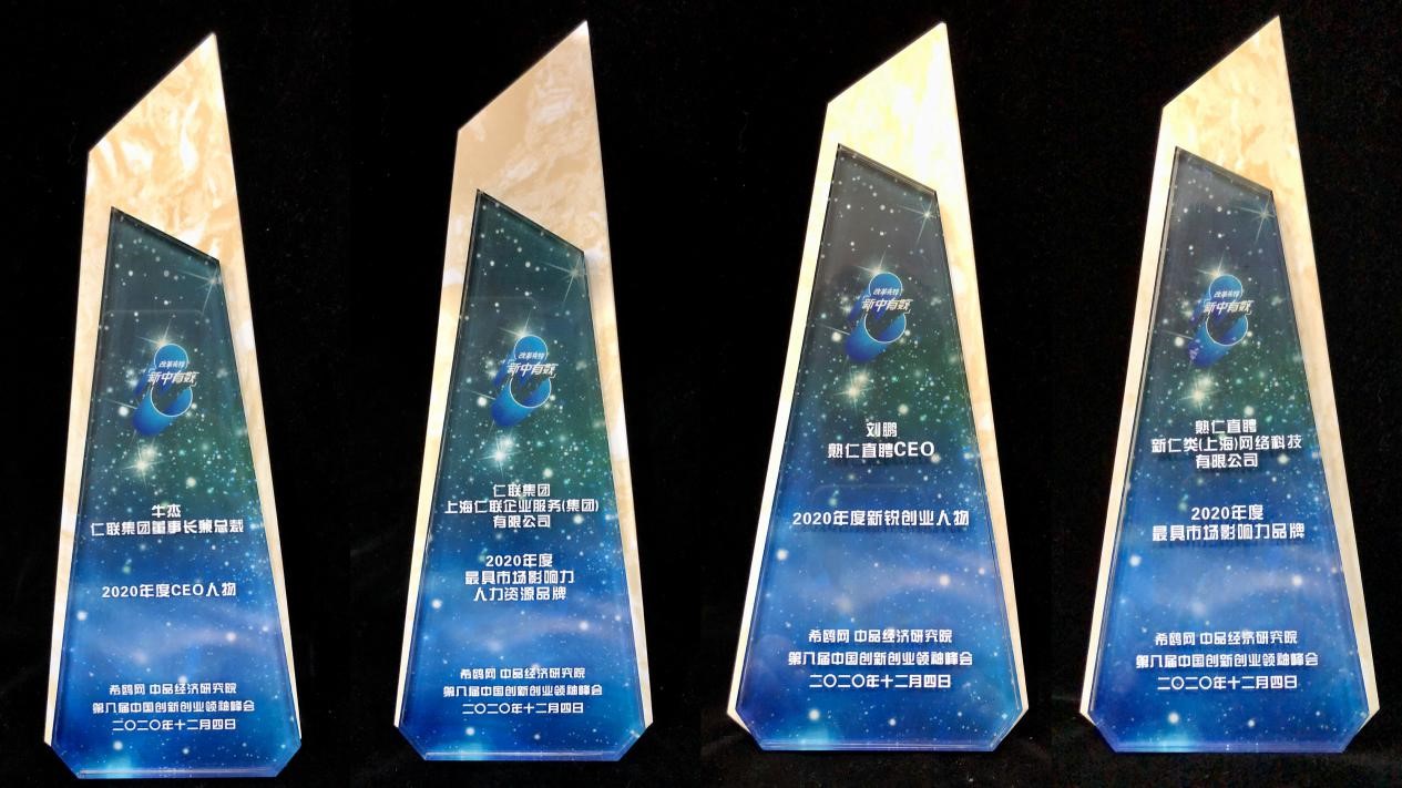 仁联集团 荣获 “2020年度最具市场影响力人力资源品牌”\仁联集团董事长兼总裁牛杰 荣获 “2020年度CEO人物\ 仁联旗下熟仁直聘 荣获 “2020年度最具市场影响力品牌”\熟仁直聘CEO刘鹏 荣获 “2020年度新锐创业人物”