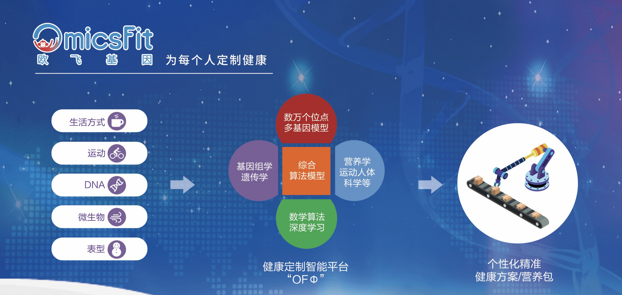 针对这一痛点,欧飞基因秉持“为每个人定制健康”的发展理念,融合国内外前沿技术成果,研发出多种满足不同用户需求的基因检测产品,并创建了个性化健康定制智能平台“OF PHI”,综合用户的基因检测数据、膳食营养评估数据和人群营养等多维大数据,为用户提供优质的基因检测服务和科学的精准健康解决方案。此外,欧飞基因借助交叉学科技术,历经数十道工序,智造出个性化定制营养包——为怡Just For Me,帮助不同人群完成精准长效的健康管理。”