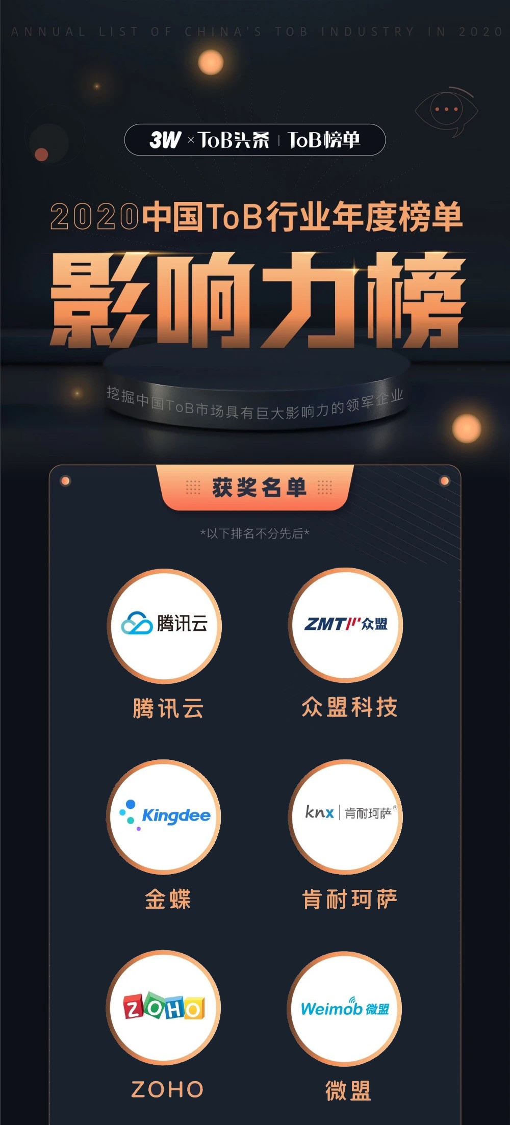 在2020年这个特殊的年度里,什么样的企业会出现在ToB行业观察媒体颁发的年终影响力榜单上?