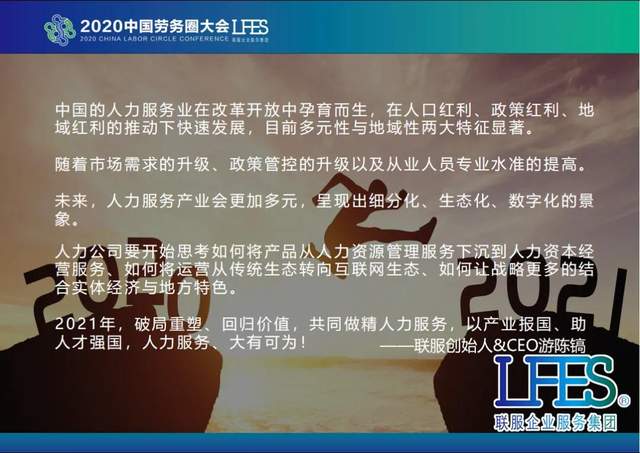联服创始人游陈镐受邀参加“2020中国劳务圈大会”并发表演讲