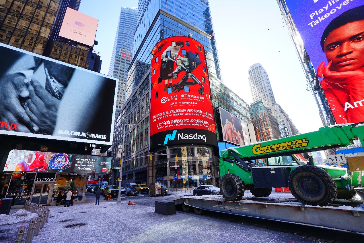 腊月二十八这一天,一组亮丽的中国红登陆美国纽约时代广场上的纳斯达克大屏,elittile逸乐途冲出国门、走向世界,这是中国品牌站在“世界的十字路口”向全球华人送上春节的祝福之声!