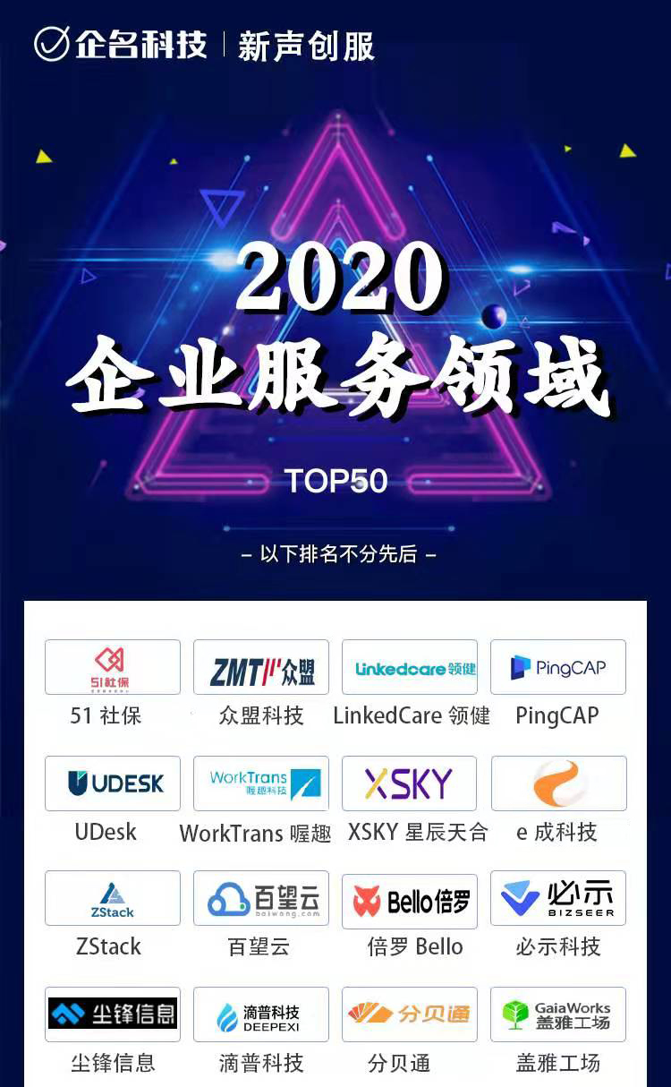昨日,由企名科技旗下的创投服务平台——新声创服发布的2020年度中国高成长企业系列榜单正式收官,众盟科技凭借在2020年的出色表现,展露出在企业智能技术领域的服务能力和创新力量,荣登“企业服务50强”榜单。