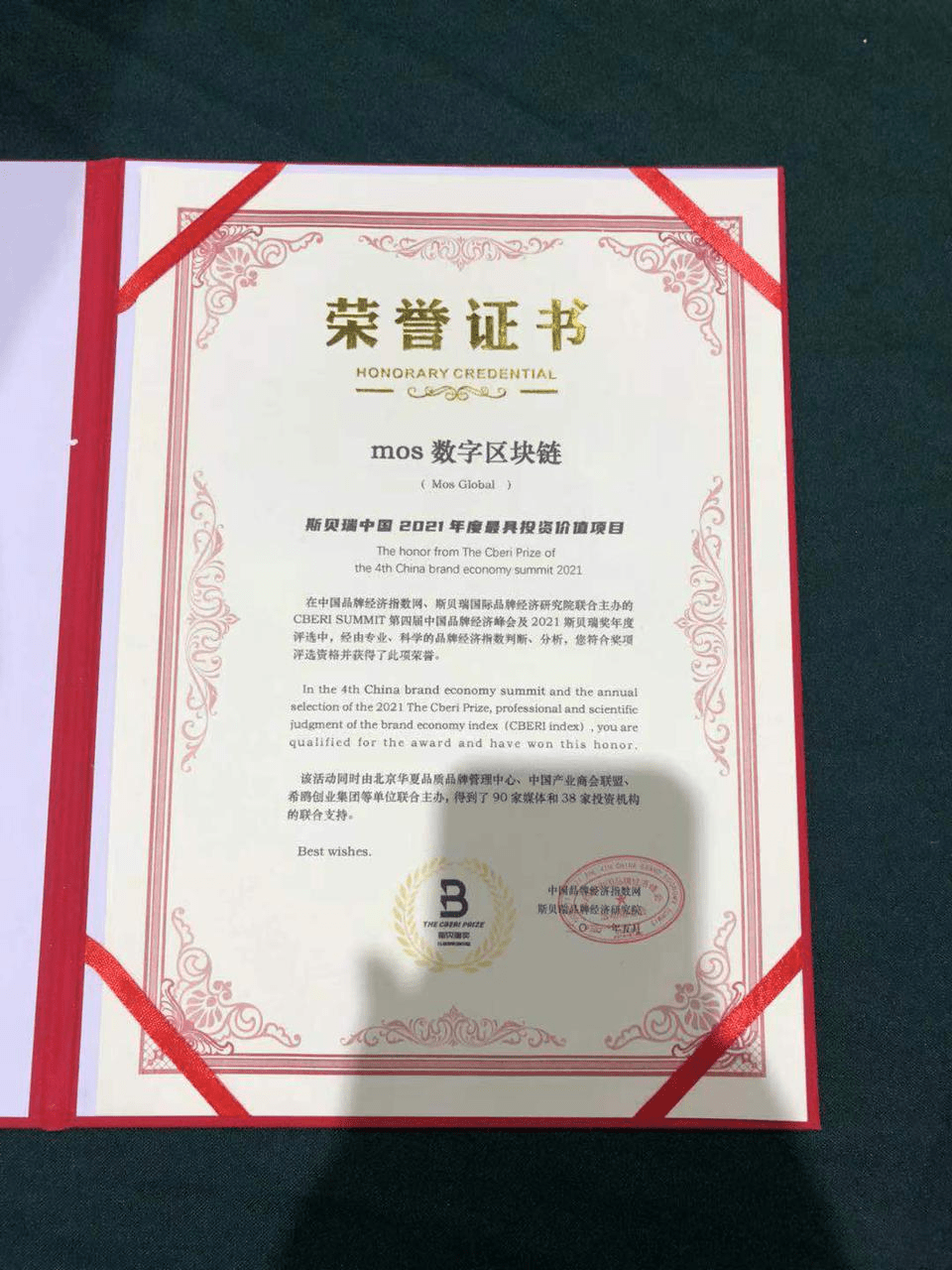 斯贝瑞,年度,CBERI,斯贝瑞,斯贝瑞奖,品牌经济网,品牌经济学,中国品牌经济研究院,品牌研究院,希鸥网,希欧,MOS数字区块链获评年度最具投资价值项目奖项