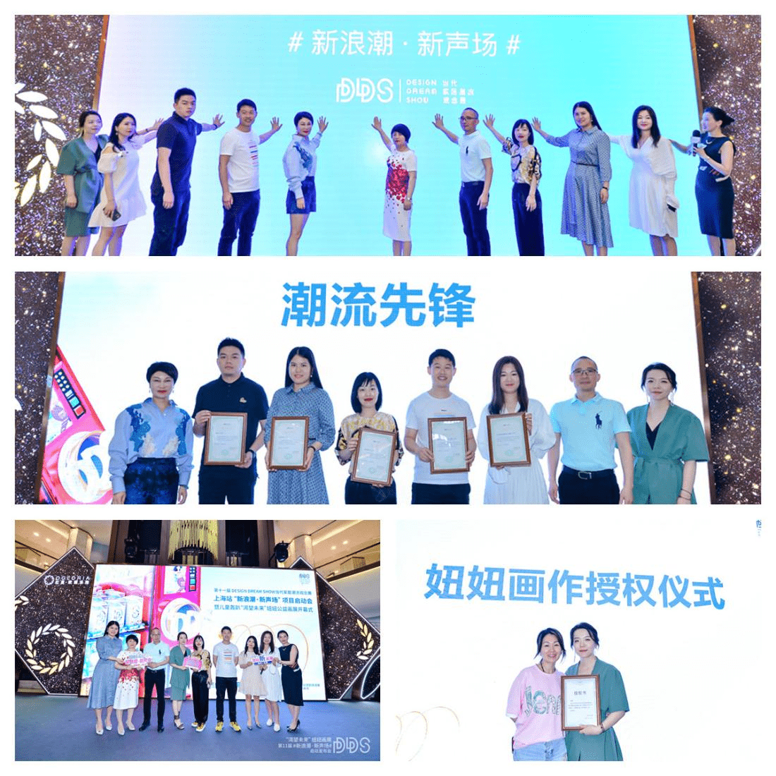 DDS的发展离不开各位家居品牌的信任与支持。共同引导家居潮流,推动行业创新,共建家居行业潮流生态,在此特别将“潮流先锋”荣誉颁发给 格林福木门、利米缇思、威罗意大利进口艺术涂料、红星美凯龙装修产业集团、喜梦宝等品牌。