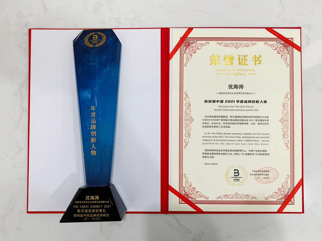 5月29日,CBERI SUMMIT 2021第四届中国品牌经济峰会在北京广播大厦(酒店)举办,全天累计签到600余人,30位嘉宾演讲,7万观众通过照片直播等形式参与了本次活动。同时2021斯贝瑞奖(The Cberi Prize)颁奖典礼也于峰会后隆重举行,成都零壹零壹企业管理咨询有限公司董事长沈海涛应邀参加,并荣获“2021年度品牌创新人物奖”。