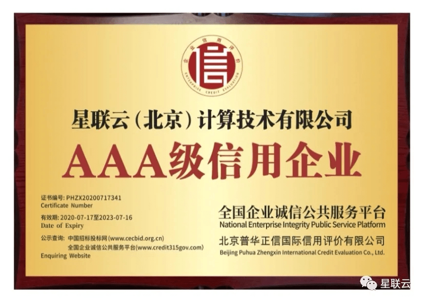 星联云品牌自创立以来屡获殊荣,2020年7月被全国企业诚信公共服务平台认定为AAA级信用企业。