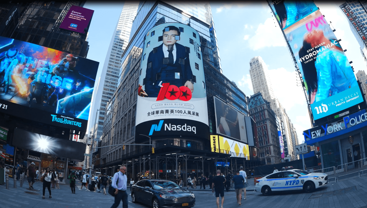 登陆纳斯达克大屏,向世界传递华商风采。纳斯达克(NASDAQ)大屏是纽约市中心——“世界的十字路口”纽约时代广场的标志性建筑,以面积之大、世界影响之广成为全球各领域领先企业争相亮相的瞩目焦点,成为洞悉世界经济的风向标——京东、拼多多、新浪、搜狐、网易、百度、携程等百余家华商菁英企业在纳斯达克敲钟上市。