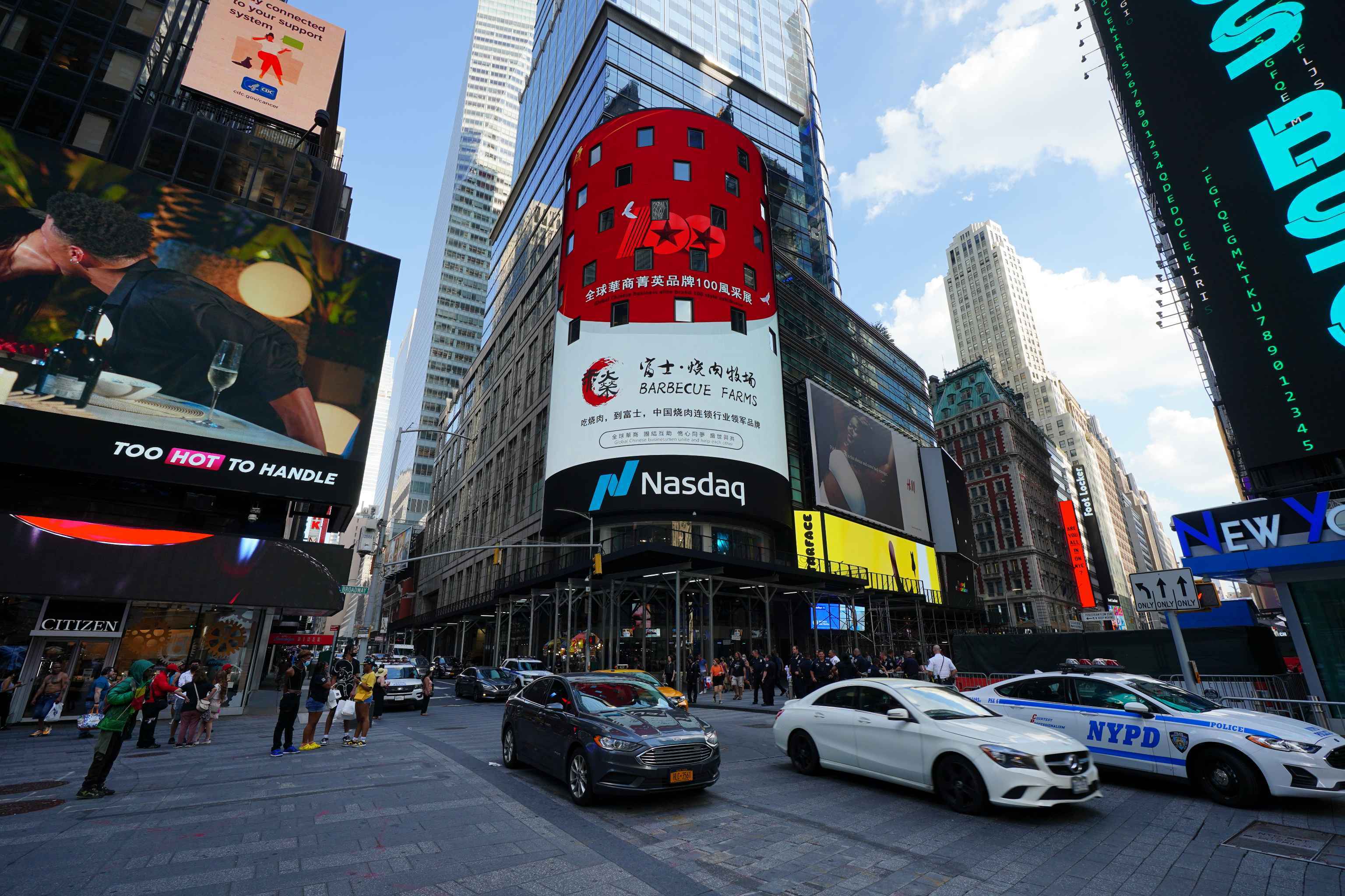赤燊富士·烧肉牧场受邀参加纳斯达克大屏“全球华商菁英品牌100”主题展