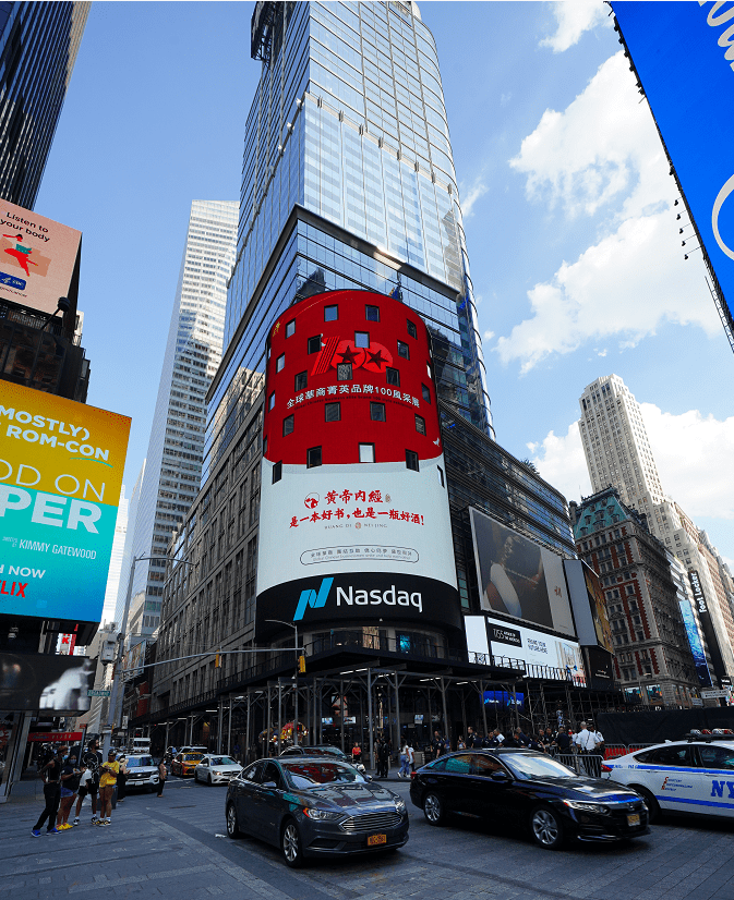 在2021年7月1日这样特殊的日子,黄帝内经酒登上了纳斯达克的大屏幕上。