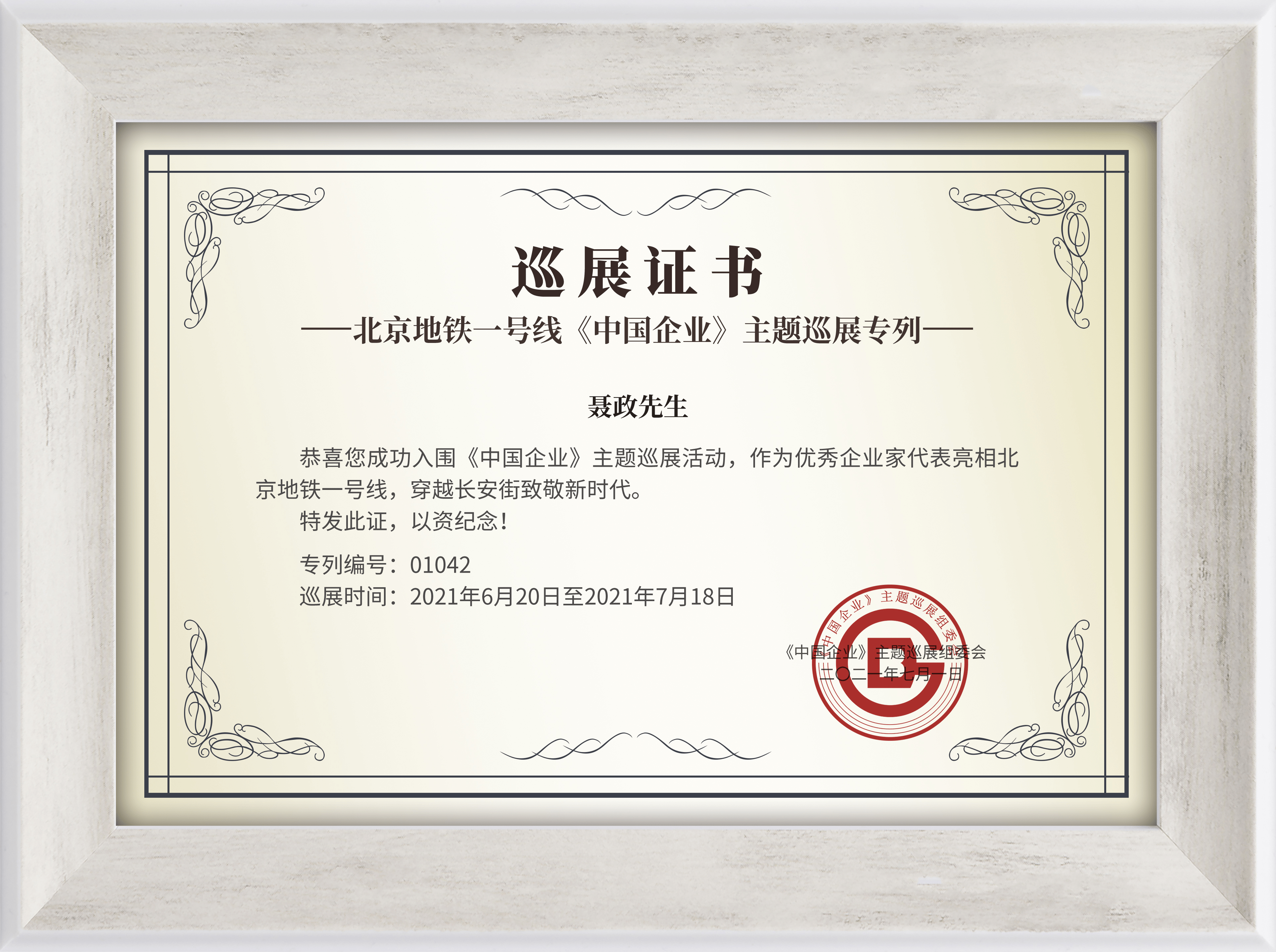 作为私募股权行业优秀企业家代表,正闻投资董事长聂政先生受邀参加《中国企业》主题巡展活动亮相北京地铁一号线,穿越长安街致敬新时代。巡展专列自2021年6月20日至2021年7月18日持续开行一个月。