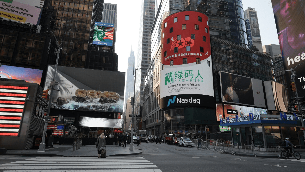 2021年7月28日,作为华商群体创新创业的杰出代表,绿码人入围并受邀参加纳斯达克大屏“全球华商菁英品牌100”主题展活动。