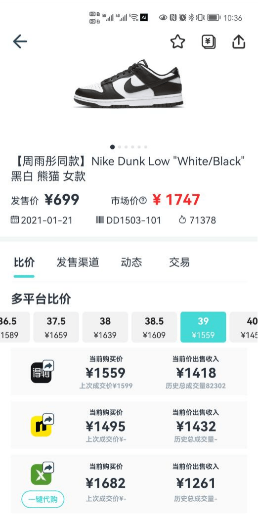 在Ai潮流的交易功能上,AI鉴定可以有效保障交易产品的真假,且AI鉴定的高效与支持全品类潮流单品的优点可以无限拓展潮流商品的数量与类别。再加上针对一级市场的发售信息监控与秒杀功能,可以有效提高交易效率和消费意愿。更重要的是比价功能的存在,极大保证了交易双方在价格信息上的明确性与可控感,让买卖双方都得以对交易保持正面态度。