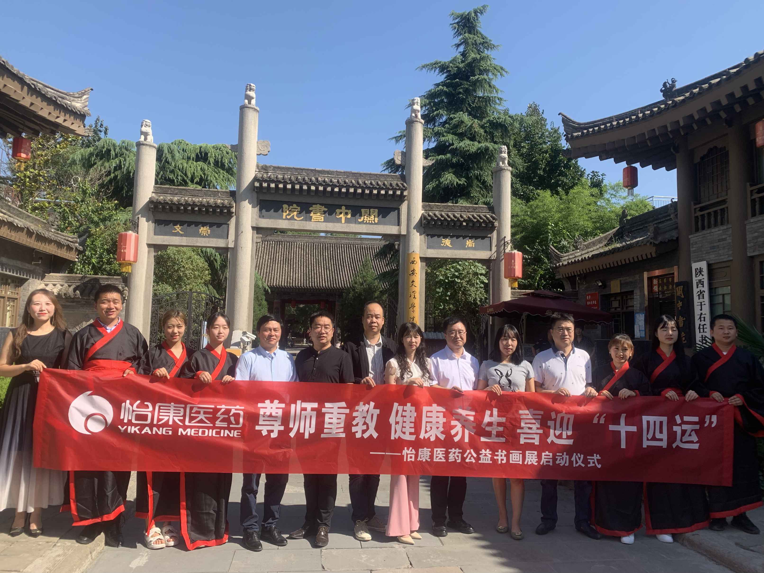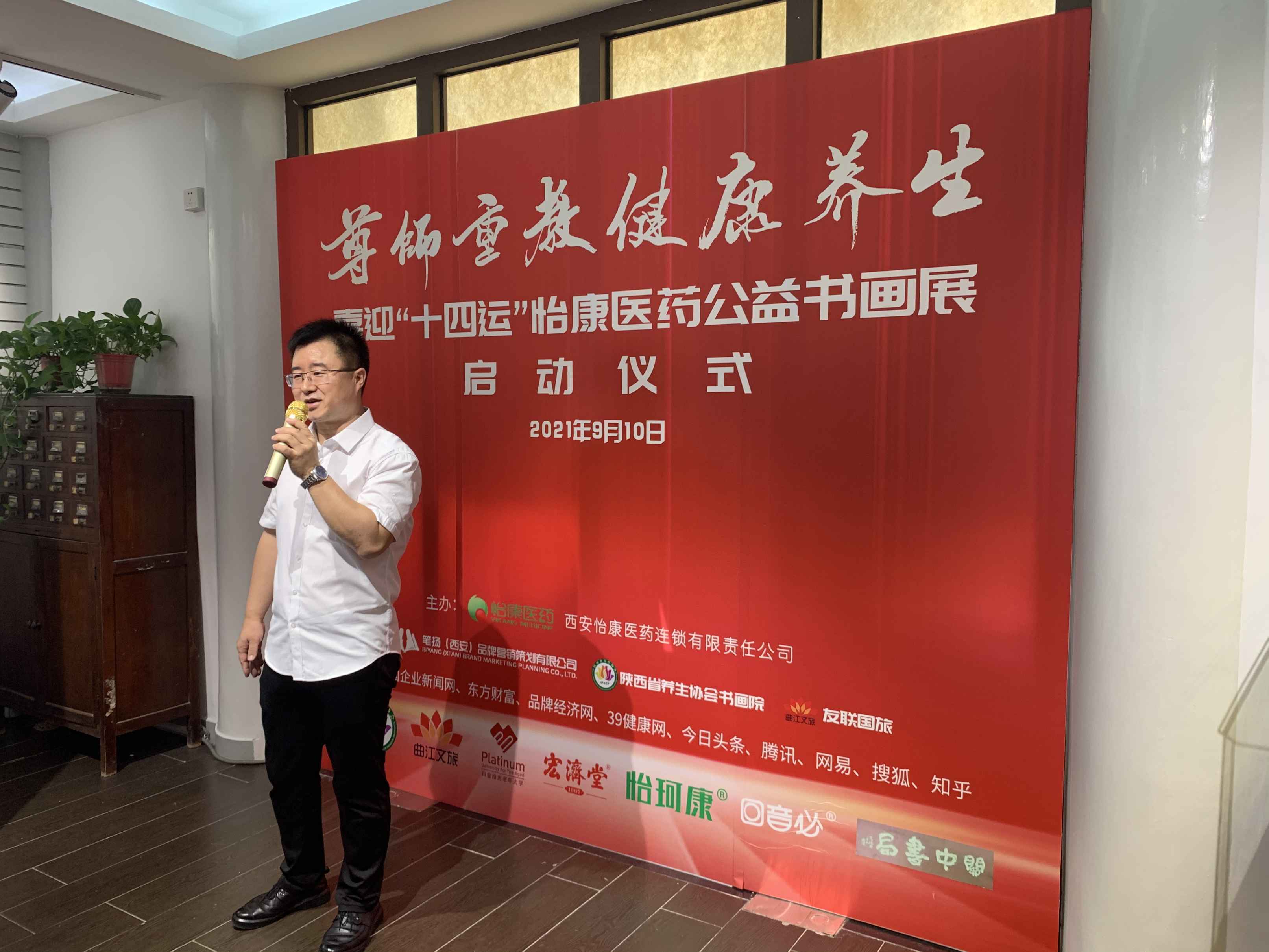 今天也是“人类灵魂的工程师”的节日,迎来了第三十七个教师节。教师塑造灵魂,拓宽我们看待世界的维度,从此人生也增添色彩;即将到来的十四运,旨在督促和帮助大家养生健康的生活习惯,提高身体素质,也是精神文明建设的重要内容;书画作为一项高雅的艺术,不论作为实用艺术还是欣赏艺术,都备受大家的喜爱,越来越多的人参与其中,把书画作为兴趣爱好,提升生活品质。今天,怡康医药携手白金拾光老年大学、陕西省养生协会、曲江文旅、宏济堂、怡珂康、宏济堂、回音必集团走进关中书局举行,“尊师重教,健康养生”,喜迎“十四运”怡康医药公益书画展启动仪式!