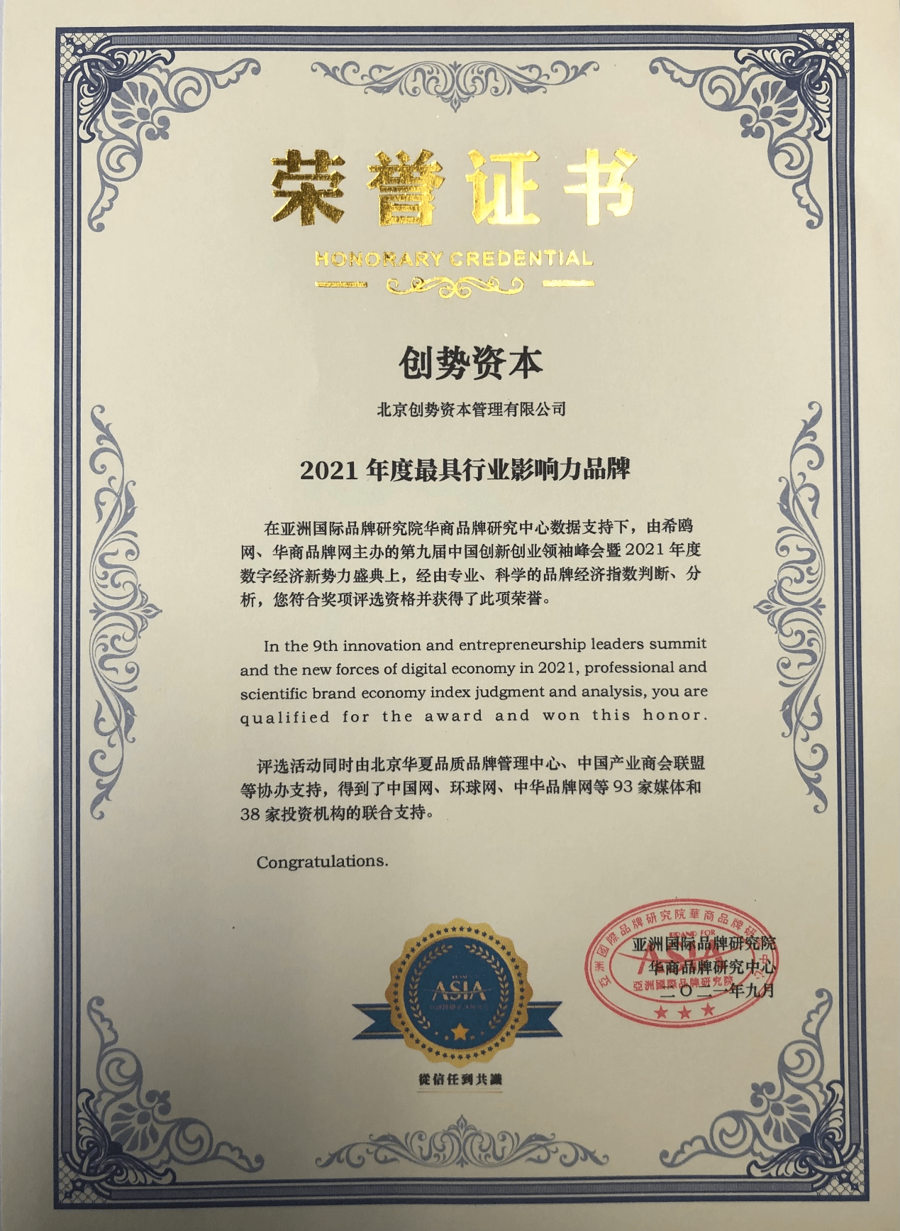 创势资本已经成长为中国科技创业投资一线品牌机构!荣获2018年“中国双创”十大创业创新典型示范企业、2019年度行业最具影响力品牌、在2019年中国天使基金退出率排名中排名行业第二位。