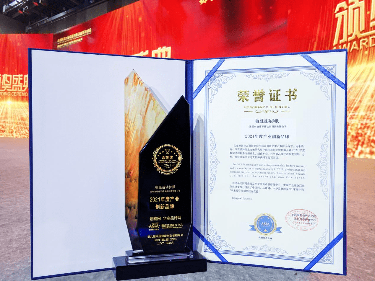 在活动的最后,第九届创新创业另行峰会年度数字经济新势力品牌及其他系列奖项荣誉揭晓,凭借创新力及在行业内的影响力,『植叕运动护肤』获评2021年度产业创新品牌奖项。