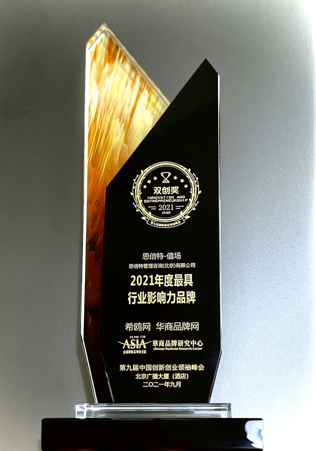 思倍特-值场获评第九届创新创业 2021年度最具行业影响力品牌奖项