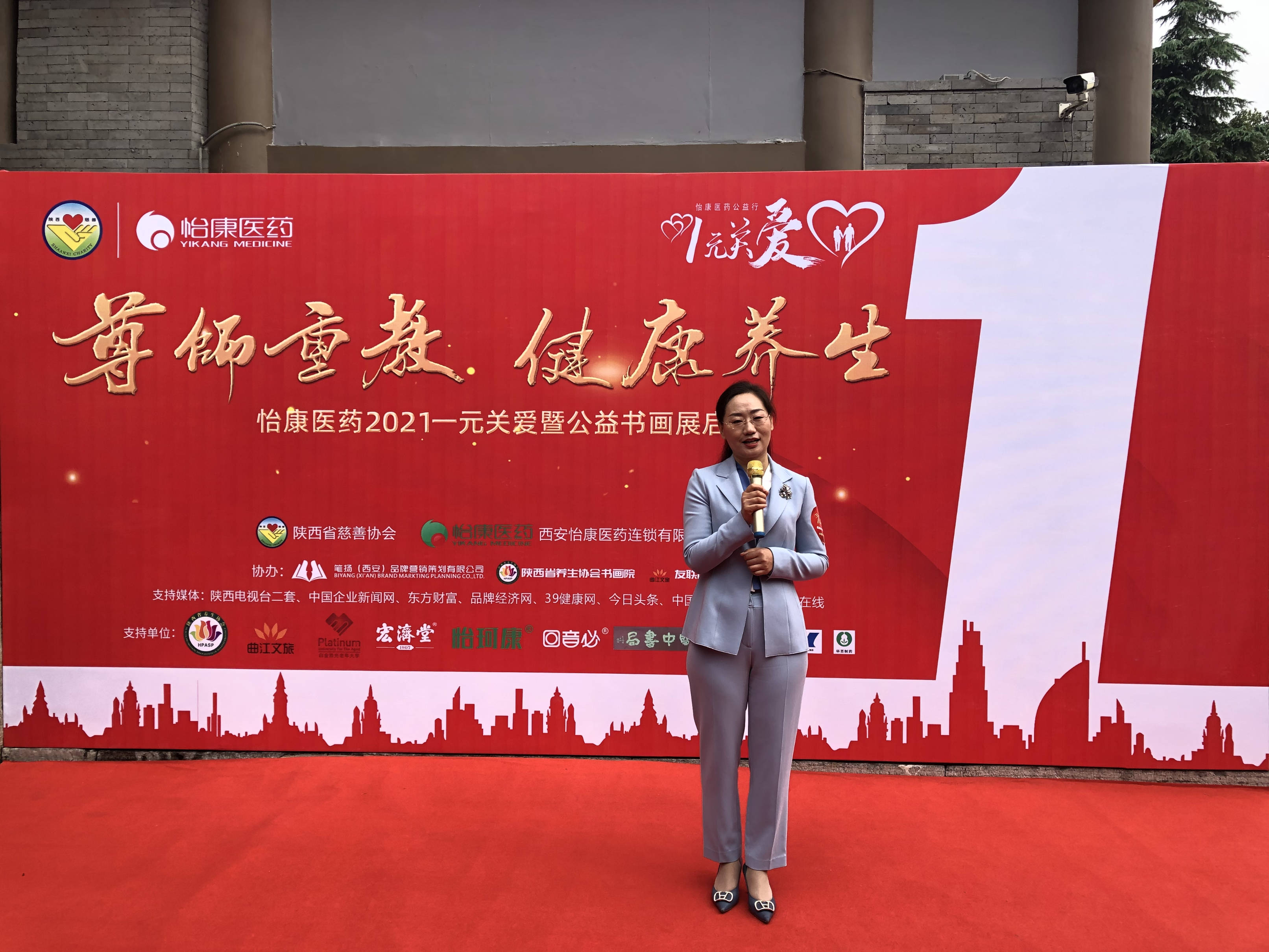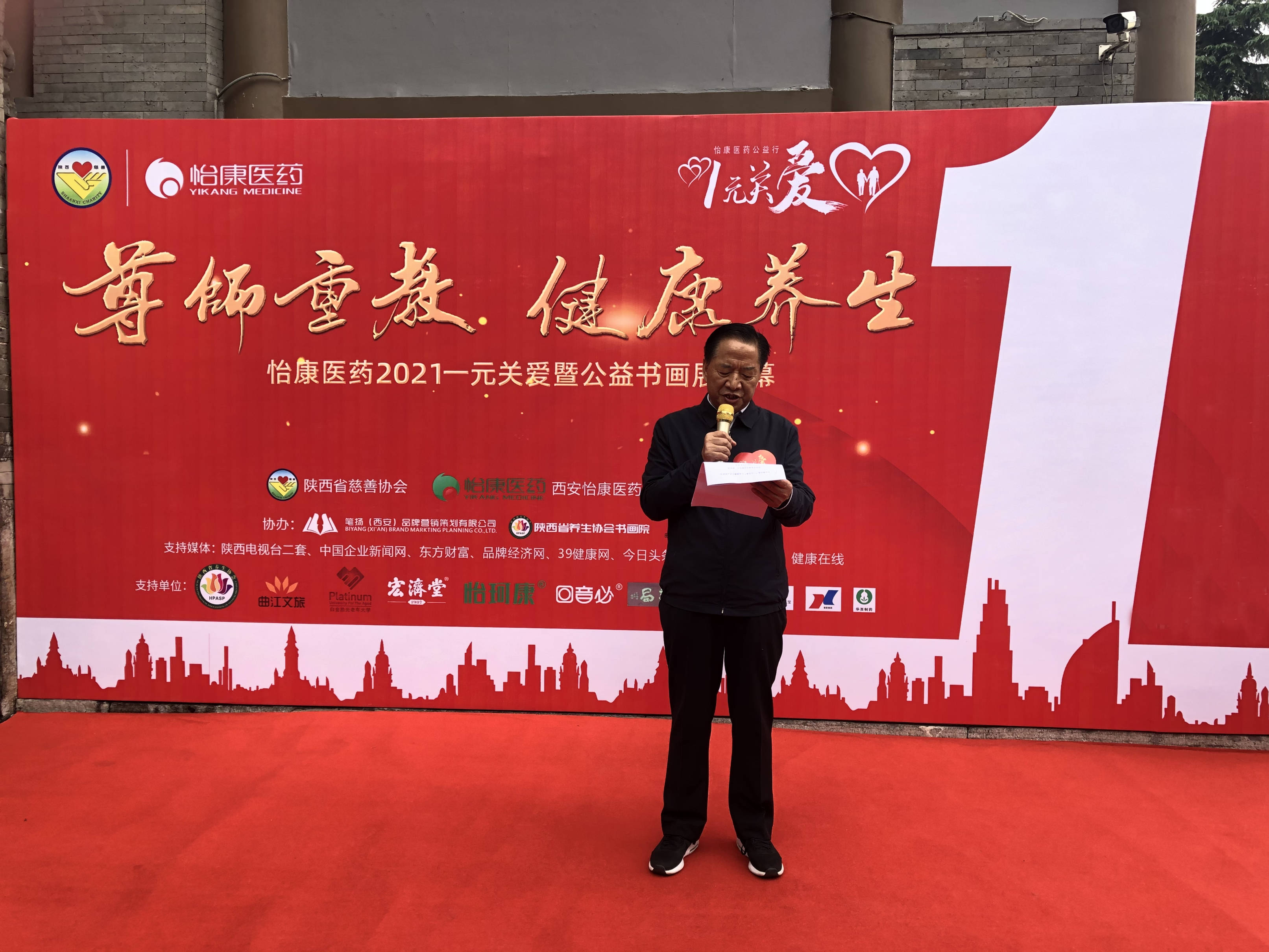 9月29日上午,由怡康医药主办的2021一元关爱暨公益书画展启动仪式在关中书院隆重举行。陕西省慈善协会副会长陈华洲,书画届爱心代表刘福英,怡康医药副总经理包维刚、市场部总监翟焕妮、怡康医药支部书记刘泓霞、陕西省养生协会会长李靖、副秘书长李建军、中国经济时报驻陕西站站长潘英丽、亚太工商合作组织文艺委员会常务副主席杜印、陕西大长安画院画家胡建强、陕西省养生协会书画院院长陈利军、曲江文旅友联国旅专项中心总经理张家胜、关中书局人文活动总策划李朵以及39家爱心药企的代表参加本次启动仪式。