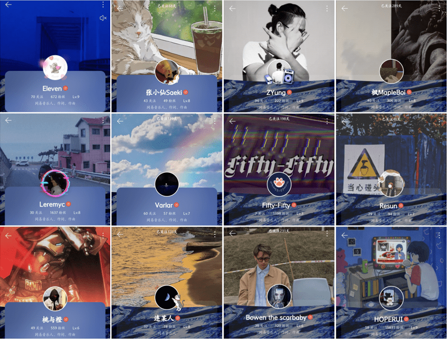 部分音乐人页面截图