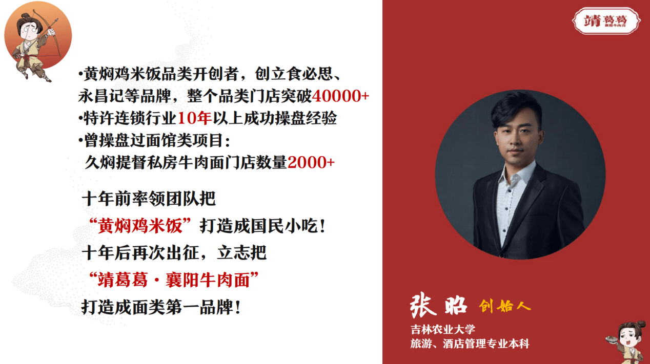 为了有效推动“靖葛葛襄阳牛肉面”的全国拓展进程,张昭紧抓襄阳牛肉面产品品类的研发与销售,并设计打造了一整套系统化的加盟体系,提出全程扶持、无需餐饮经验、上手更快、手把手技术指导几大具体服务措施和基本要求。