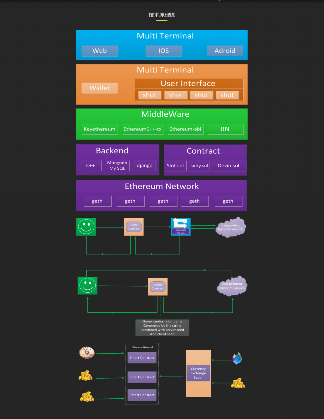 区块链技术基础上进行游戏开发、深化,实现区块链和游戏的无缝融合,实现TOKEN、区块链和游戏产业的生态融合。
