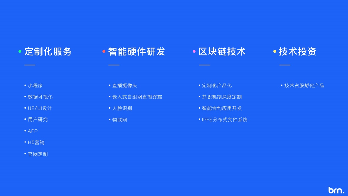 博睿恩云链致力于成为企业尖端科技定制领域的战略合作伙伴,推动大数据、移动互联网、人工智慧、区块链等领域深层级次应用及发展。