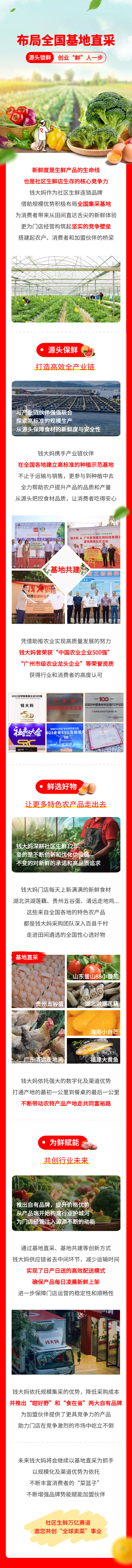 新鲜度是生鲜产品的生命线,也是社区生鲜店生存的核心竞争力,钱大妈作为社区生鲜连锁品牌、借助规模优势积极布局全国集采基地、为消费者带来从田间直达舌尖的新鲜体验、更为门店经营构筑起坚实的竞争壁垒、搭建起农户、消费者和加盟伙伴的桥梁。