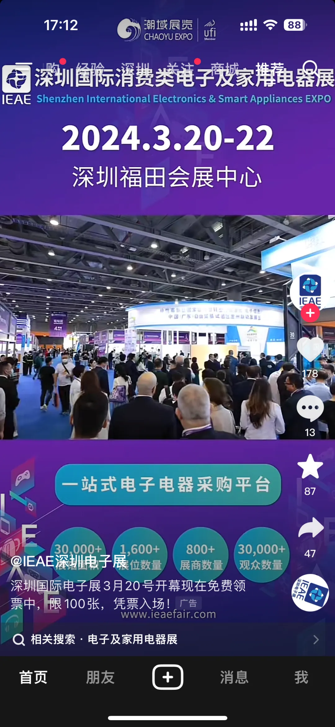 IEAE深圳电子展融合线上线下媒体,全方位营销展会信息,精准触达意向买家。利用社交媒体、行业网站、邮件营销等数字化渠道定制化推送展会亮点与企业新品,增强宣传效果。线下则通过户外广告、市场邀约及与行业协会、媒体、电商平台的紧密合作,扩大展会覆盖面与影响力,助力企业品牌曝光,促进贸易合作。
