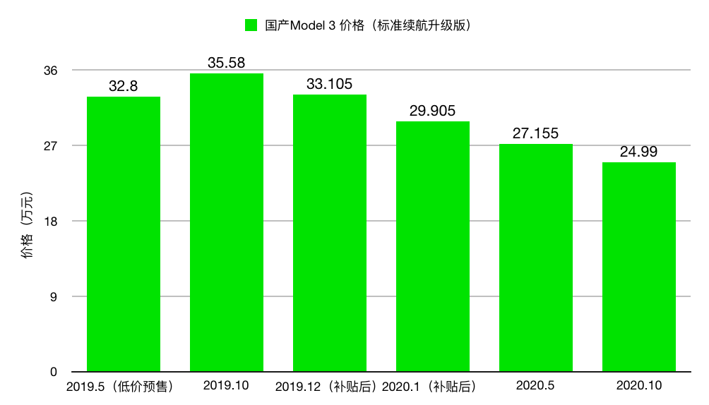 以国产 model 3 为例,除了正式预售比低价预售时涨价,不到一年半的时间里,标准续航升级版 Model 3 已经历过 4 次降价,降价幅度一次比一次大。