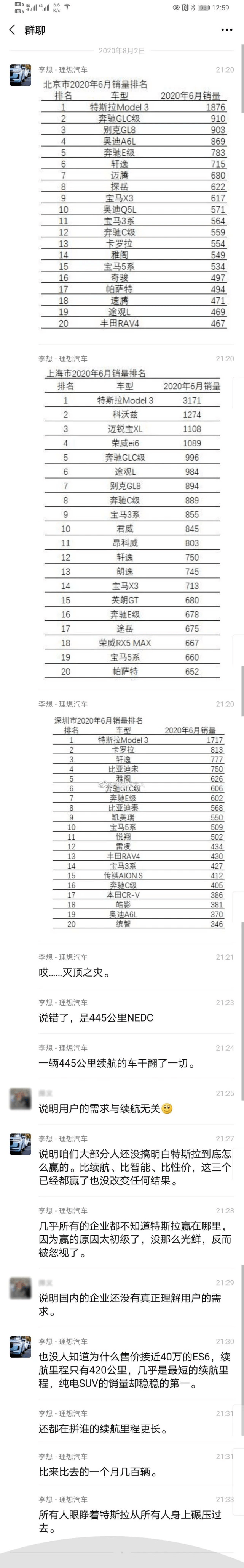 理想汽车创始人李想曾在一个微信群里发过一张北京、上海和深圳三座中国一线城市的汽车销量表,2020 年 6 月,特斯拉 model 3 已经是包括燃油车在内的所有车型销量冠军。「灭顶之灾」,李想这么形容。