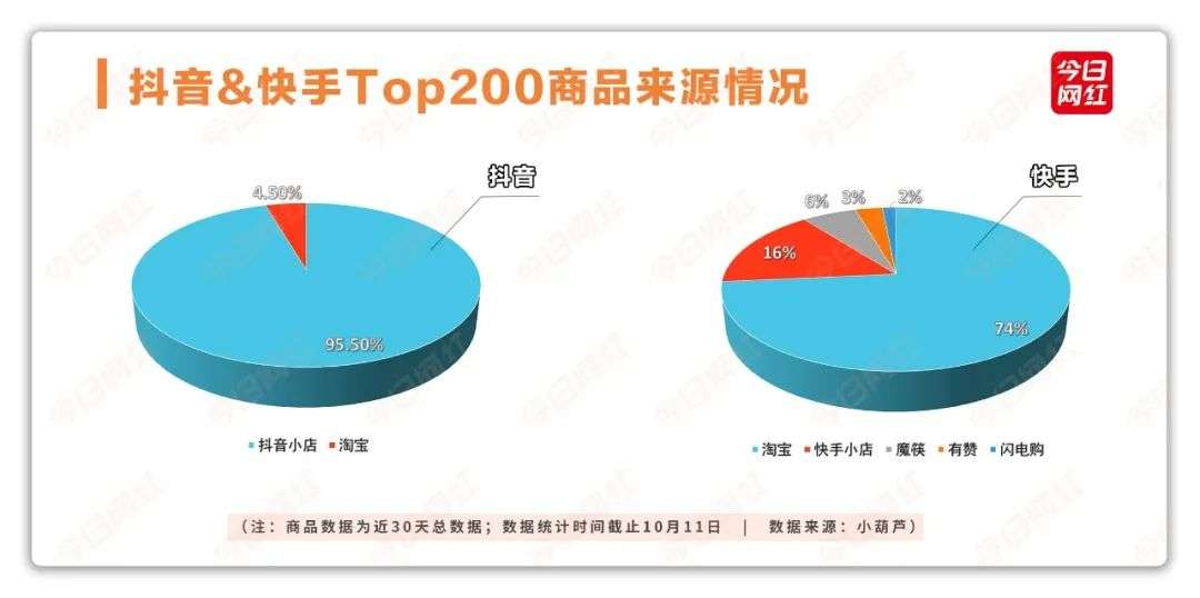 而早前就开始布局供应链的快手,其商品来源更为多元,其中来源于淘宝的商品占比达到了73.5%。