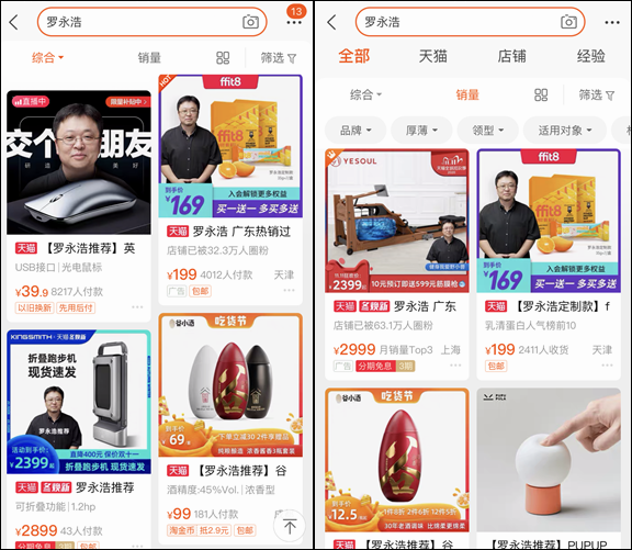 论个人影响力,罗永浩要高于辛巴。辛巴个人的品牌影响力,在电商直播圈里似乎仅限于自己的快手直播间。