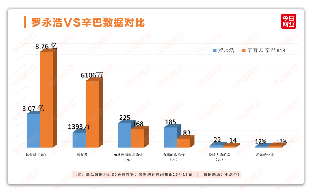 或许在不久的将来,罗永浩与辛巴之间的PK会由个人数据对比,变成两个家族成绩的对垒。