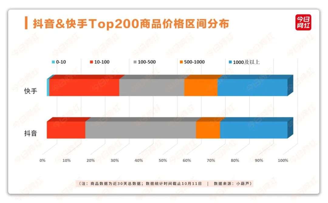 而抖音主打100-500元的腰部价格区间;