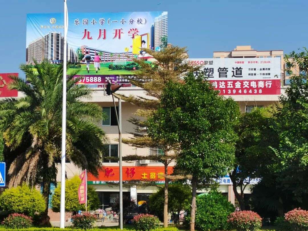 地方挺大有几十座工厂,路灯上挂着一个 “乐” 字,应该是乐昌的意思。