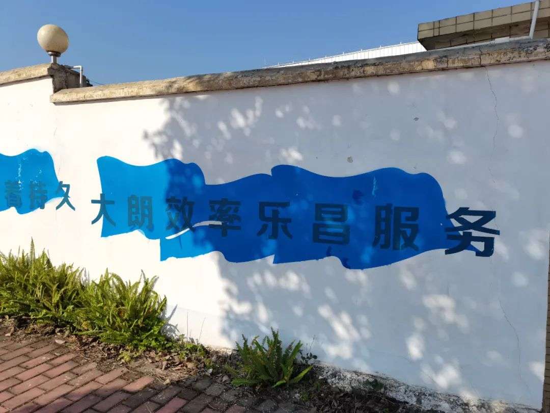 路边的墙上写着 “大朗效率乐昌服务”,大朗是东莞的一个镇。