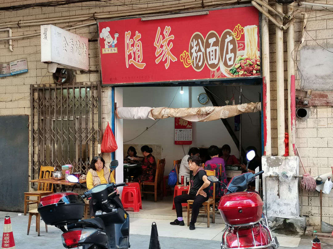 粉面店,店铺门口通常有1到2个人警惕坐着盯梢。