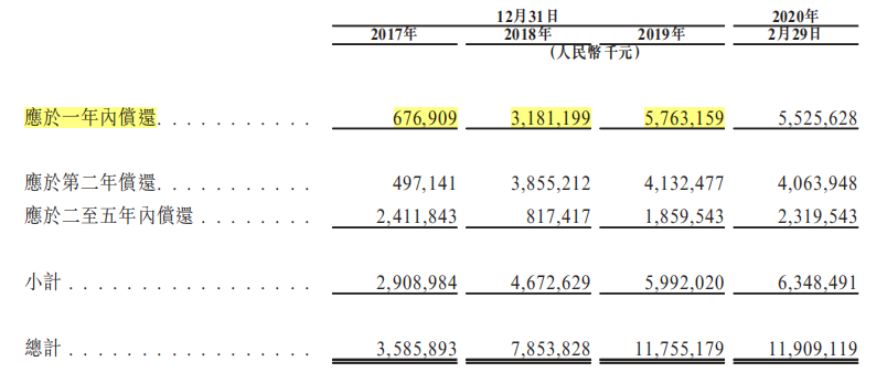 第二项是现金短债比。2019年末,领地一年内要到期偿还的负债为57.63亿元,现金短债比为0.55,短期偿债压力较大。