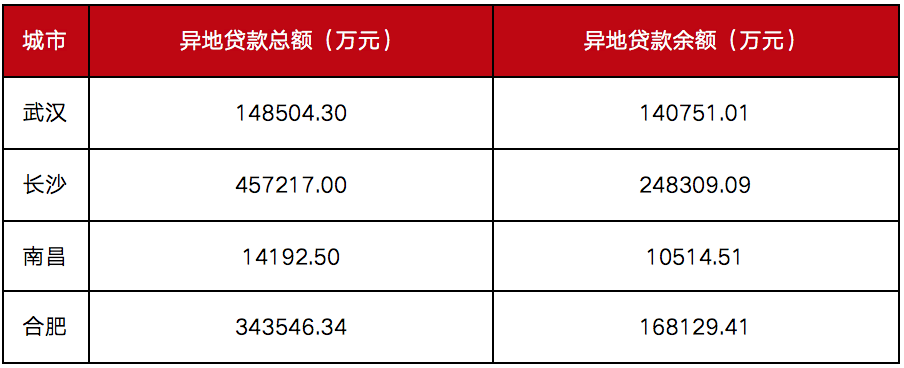 表:截止2019年末长江中游城市群省会城市 异地贷款业务总览