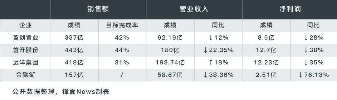 具体而言,首创置业营收同比下滑12%,净利润下滑28%;首开股份营收下滑22.35%,净利润下滑38%;金融街营收下滑38.36%,净利润下滑76.13%。唯一实现营收正向增长的远洋集团,出现增收不增利的现象。数据显示,上半年远洋实现营收193亿元,同比增长12.23%,净利润为12.23亿,同比下滑35%。